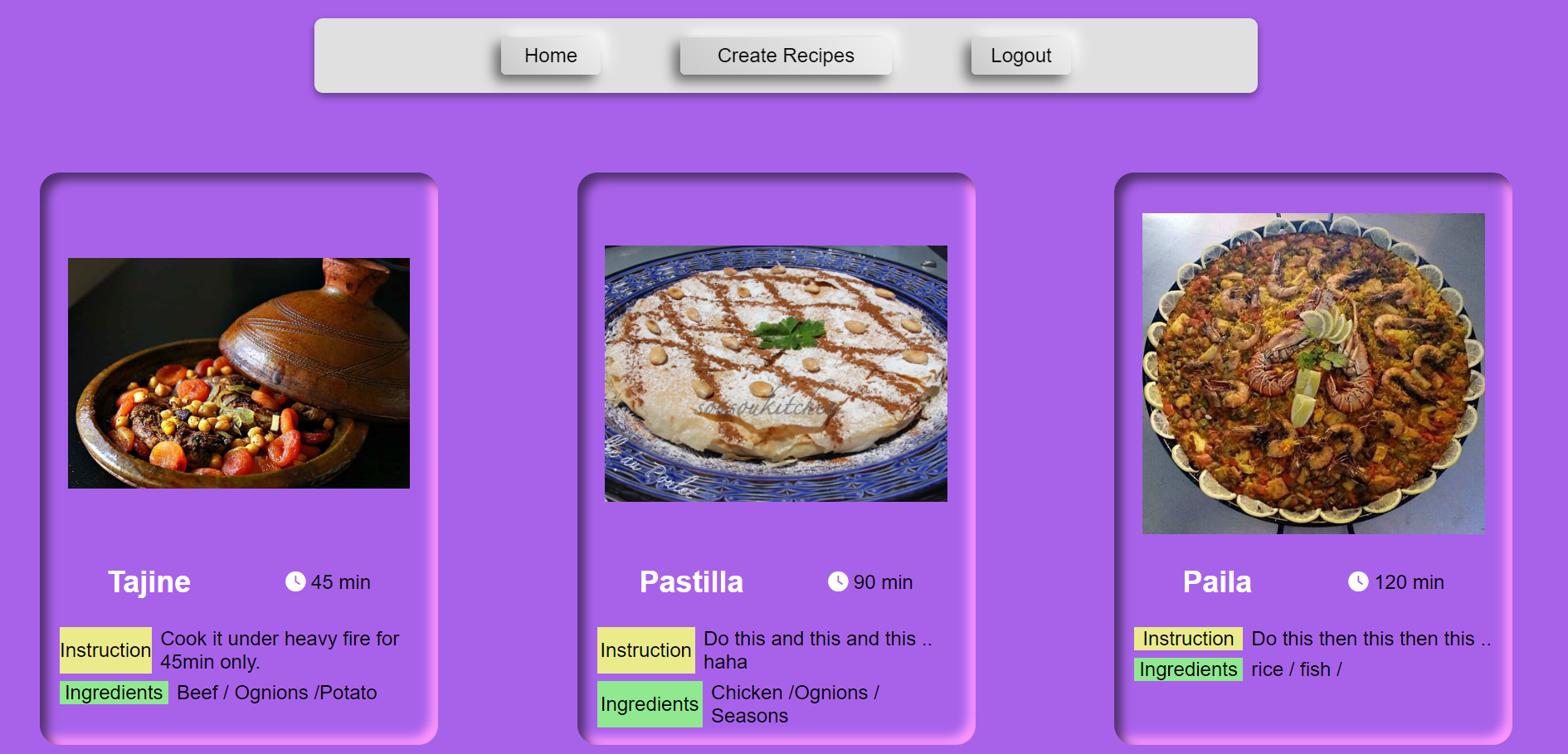 a plateform where registered users can create recipes and share it in Home page. This application needs dozens of features.